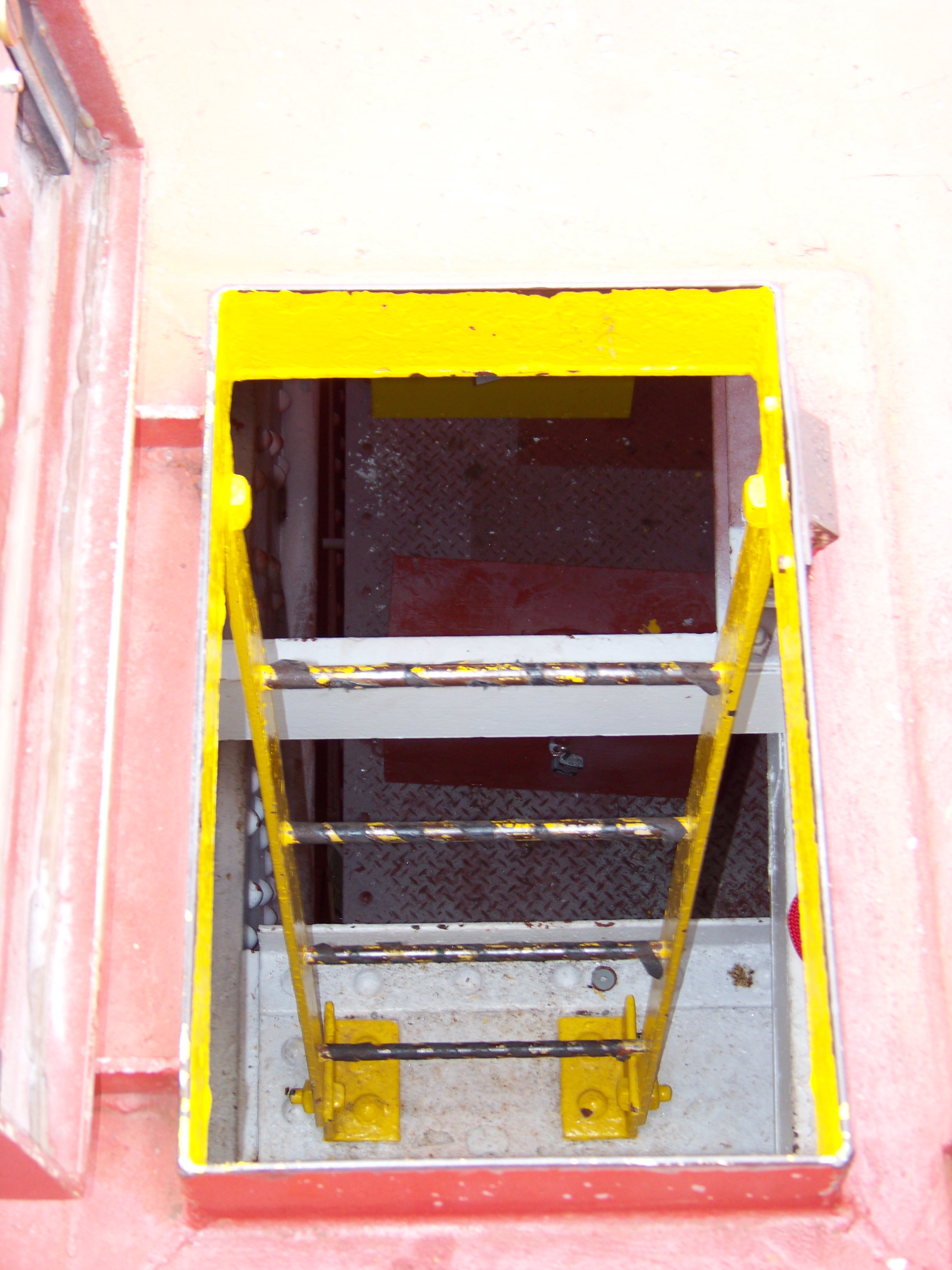 Three human sardines at a time, an elevator so tiny rivets passed an inch from your nose. A dark ladder fifteen feet to a landing and this final few rungs out the portal to the top.