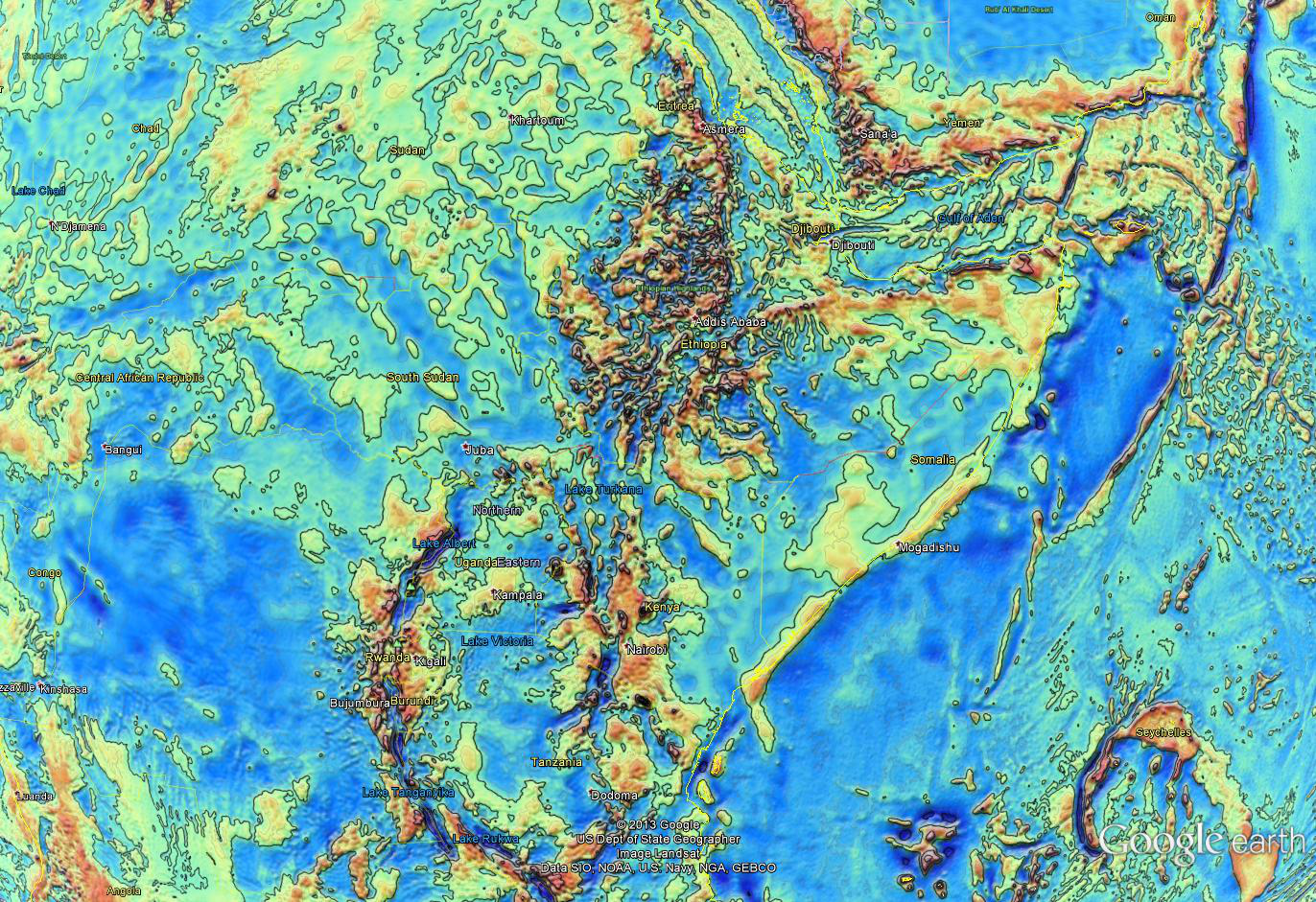 The signature is textured, often linear high gravity “horsts” interspersed with low gravity “grabens”. This poses an interesting question because if we take the conventional view that an even crust was uplifted and stretched, it is not clear why the horsts should float any higher on the mantle. The answer must be that the crust was not even and the horsts are toy sailboats with keels of more fractionated material.