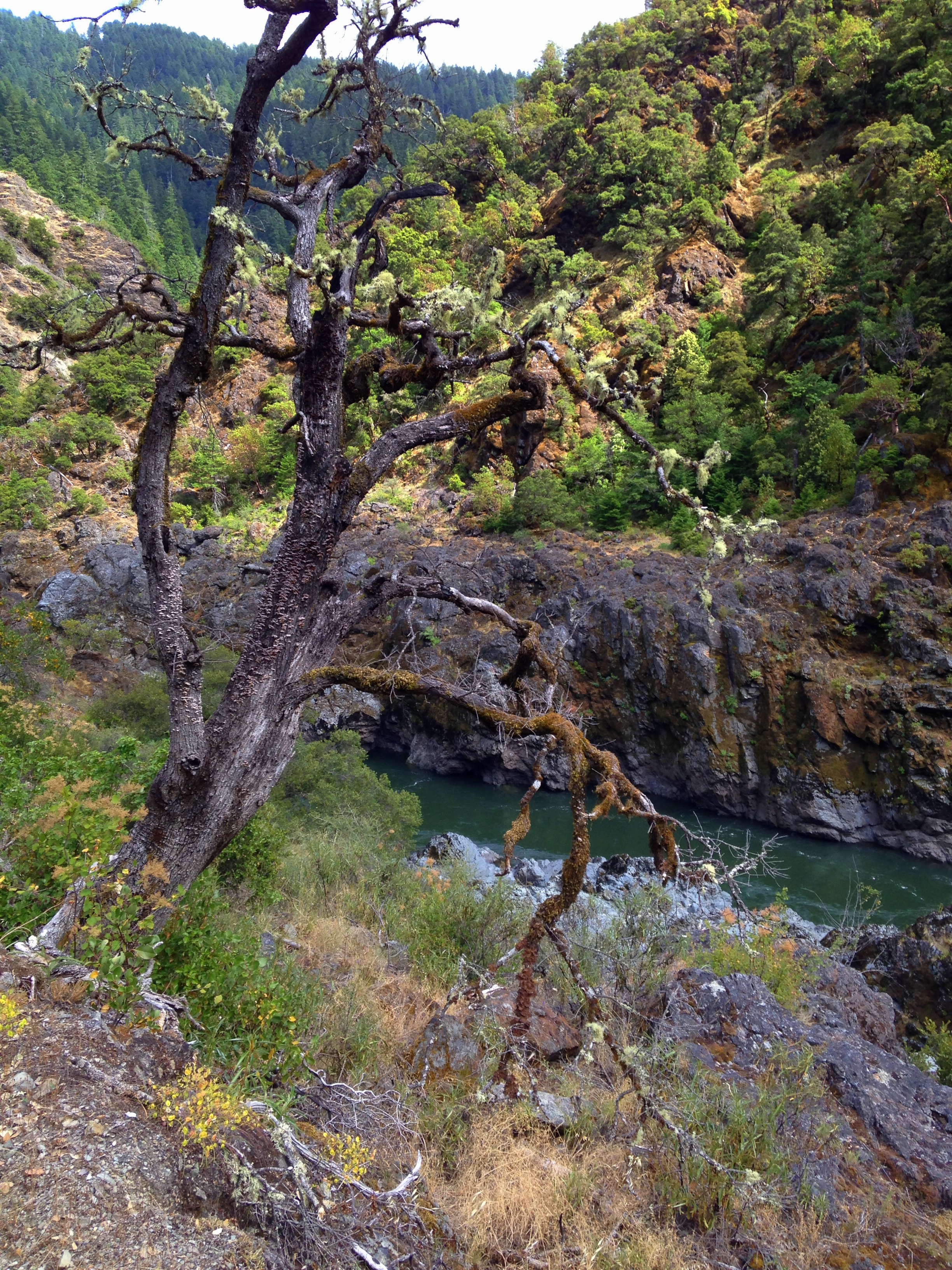 Lush forests of Douglass fir, oak and madrone line canyon walls of alternating sediments and metamorphosed ocean floor that get progressively younger as you proceed down the river. The bigger rapids take place at the sutures between rock units with harder metamorphic and volcanic rock forming ledges where softer rock downstream was chewed away. For reasons we really do not understand a succession of volcanic island arcs and their eroded sediment basins piled up one after the other in the area of the Klamath and Siskiyou mountains of northern California and southern Oregon beginning two billion years ago when the single celled creatures living then were first evolving nuclei and the continents were apparently swept into a pile down at the south pole.