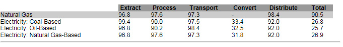 Nothing is simple. California produces most of the unsustainable half of its electricity from natural gas. To make this equivalent to the diesel burned in the truck to EBMUD this natural gas must be adjusted first by the conversion efficiency to KWh and second for the relative joule content (.67) of natural gas to diesel.
