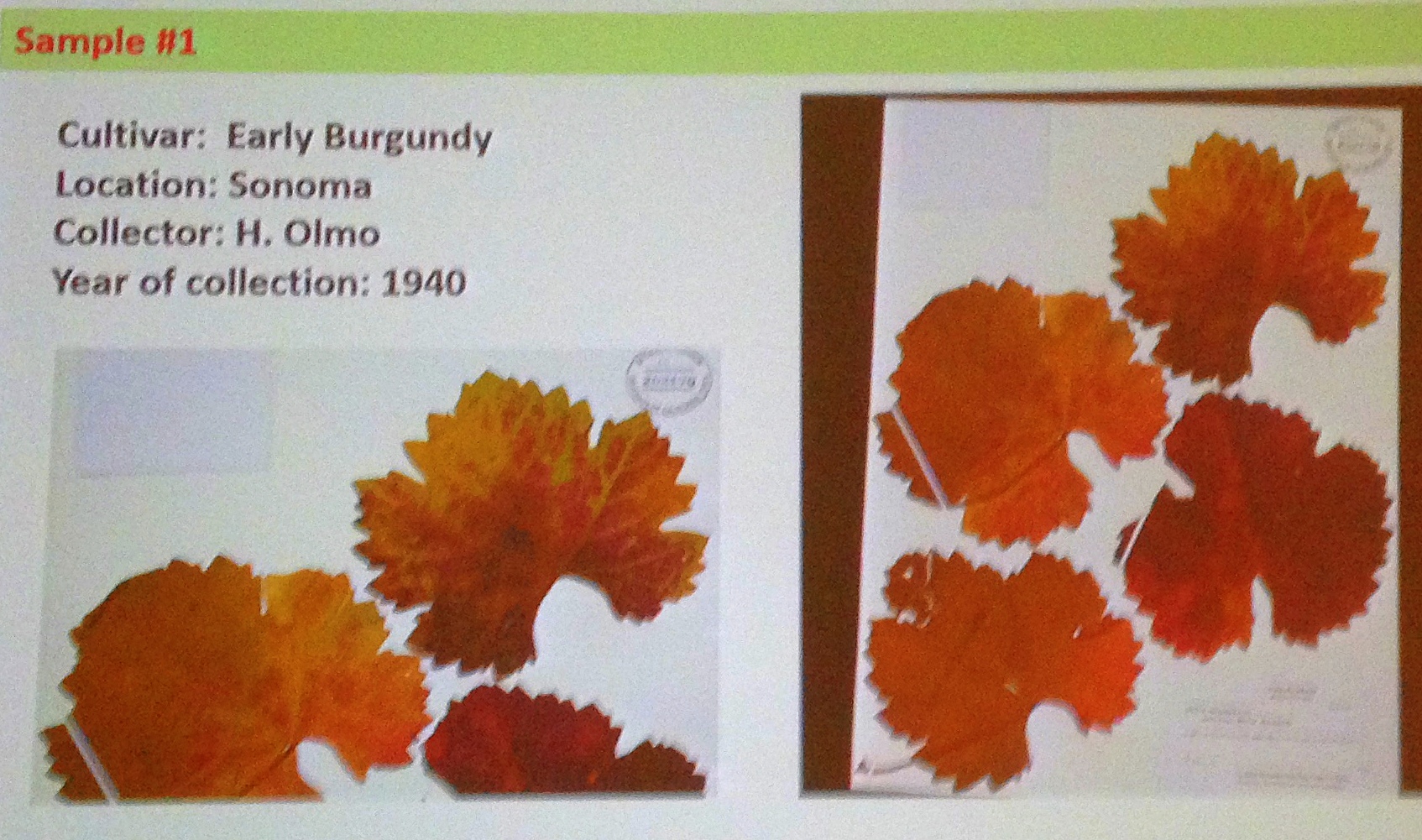 Dr. Golino has assayed the virus from a leaves collected in 1940 near Geyserville.