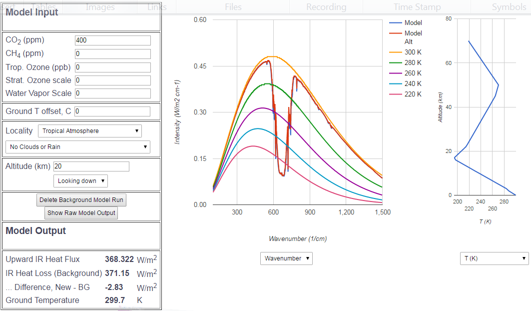 We recently finished a series of posts on the 2 good greenhouse gas in which we established that all the “earthlight”, the long wave spectra emitted at the temperature of the planet surface is extinguished within about 100 meters of the surface in the bands comprising the fundamental bending strike zone of CO2.