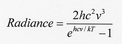 This basically inverts the Planck equation to give temperature. The I is confusingly intensity. We plugged in MODTRAN total radiance for I and got: