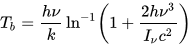 This basically inverts the Planck equation to give temperature. The I is confusingly intensity. We plugged in MODTRAN total radiance for I and got: