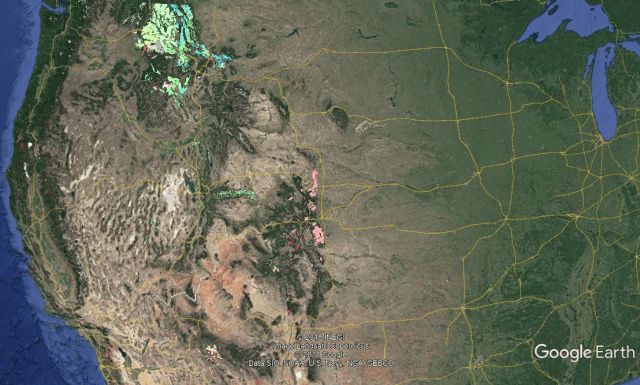 For context, we show above the distribution of middle and late Proterozoic rocks in the western United States. These formed at the same time as the Supergroup. The warmer colors are igneous granites and volcanics and the cooler colors are sediments. The “W” of the Grand Canyon is shown as a white path in the lower left. The large area of sediments at the top of the image extends well into Canada and is known as the “Belt Supergroup”. Correlation of these units with the Grand Canyon Supergroup is hindered by the same difficulties of dating sediments.