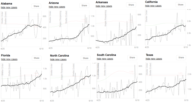 Perusing the state new case curves on https://rt.live/ some patterns become apparent.