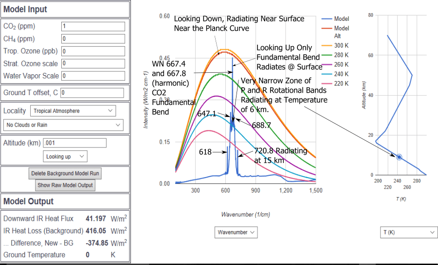 Modtran up and down 1 ppm 70 km