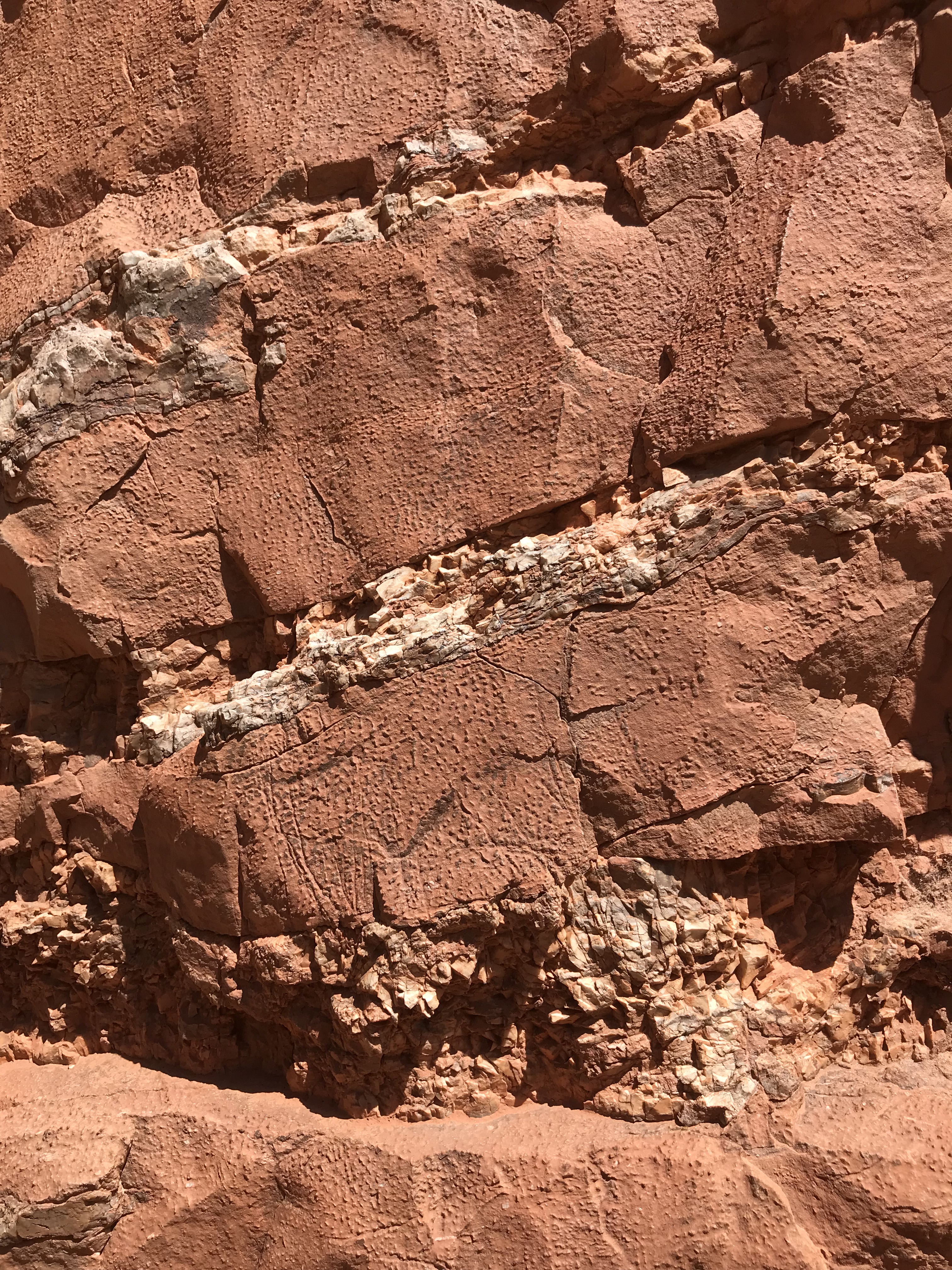 Above is detail of Redwall Layering from the near the bottom of the Redwall section at the famous Redwall Cavern.