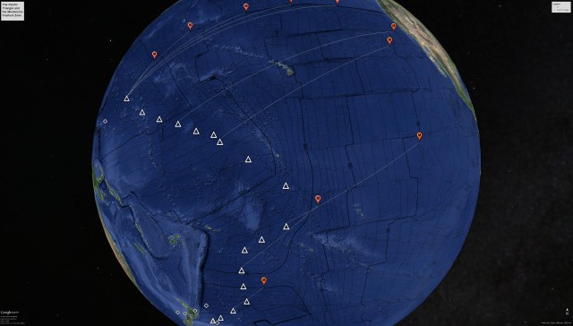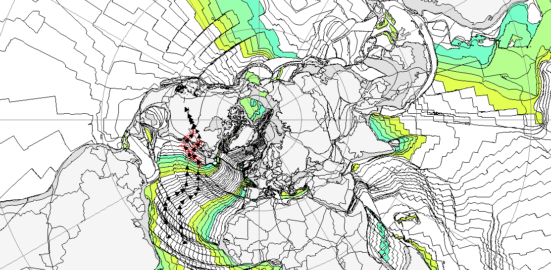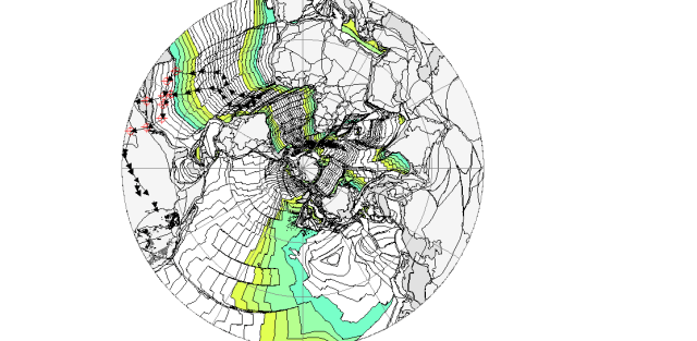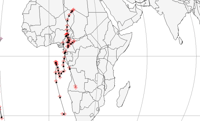 Above are the evolved wander paths on today’s globe. Quite a spectacle. It can be seen from point clustering that there are variations in spreading rate with time. Using the coordinates, individual continental motion rates can be calculated.