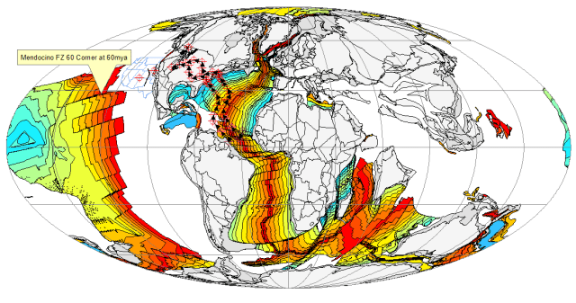 In 2014 we obtained the ArcMap data from Christopher Scotese’s Paleomap Project. Using the Point Tracker utility, we projected the southwest and northeast corners of the State of Colorado back to 250mya. We used these and other anchor points to project existing western US surface geology back as well.